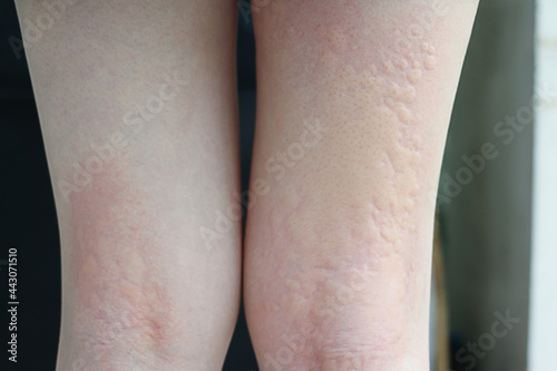 Dermatitis on Asian woman's thigh