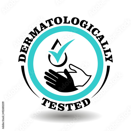 Dermatologically tested vector stamp with hands icon isolated on white. Skin care safe symbol for product packaging
