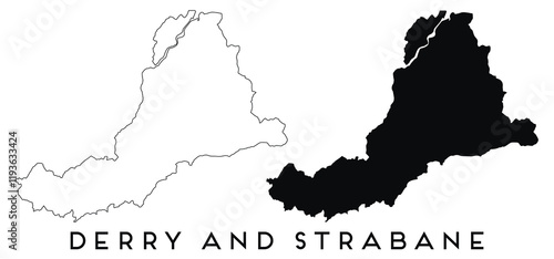 Derry and Strabane map outline and black silhouette vector