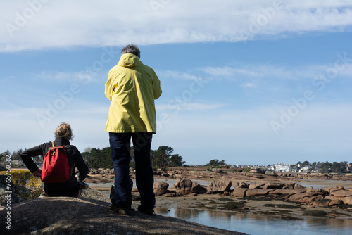 Des promeneurs qui regardent la mer cur la côte Bretonne - France