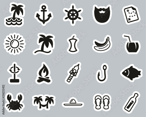 desert, island, icon, thin, line, vector, illustration, flat, simple, outline, black, isolated, concept, web, design, silhouette, cyberspace, logotype, sticker, stranded, anchor, steering wheel, beard, map, sun, sea, apple, food, drink, banana, coconut, fire, tool, spear, hand-made, fish, crab, hat, flip-flop, bottle, message, hammock, survival, stick, signs, symbol