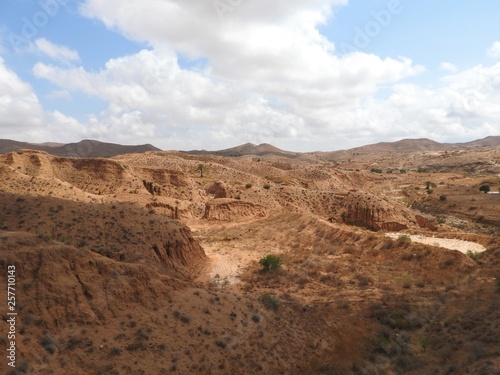 Desert landscape and clear sky near Matmata in southern Tunisia, North Africa.