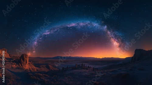 night, sky, star, milky way, landscape, desert, horizon, twilight, nature, beauty, astronomy, scenery, cosmic, serene, panoramic, illumination, rock, formation, calmness, exploration, wilderness, celestial, view, photo, environment, dark, light, silhouette, immensity, peaceful, adventure, travel, nightscape, universe, aethereal, distant, mountain, mystic, awe, calm, wonder, breathtaking, expansive, atmospheric, natural