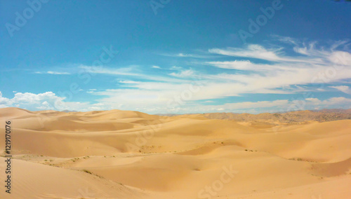 desert, landscape, dune, sand, sky, blue, cloud, horizon, immensity, serenity, wilderness, nature, scenery, travel, adventure, freedom, expanse, sun, light, heat, arid, dry, dune, texture, pattern, geography, geology, natural, panoramic, scenic, majestic, breathtaking, untouched, wild, environmental, ecology