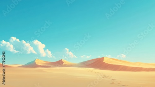 desert, sand, dune, sky, sun, cloud, footprint, heat, arid, landscape, horizon, travel, adventure, nature, hot, summer, scenic, view, background, texture, gold, yellow, orange, blue, huge, wide, expanse, calm, peace, serenity, stillness, calmness, solitude, remote, wilderness, untouched, barren, dry, sandy, dune, hill, trail, path, step