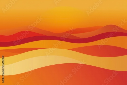 Desert Sunset Gradient: A desert landscape with sand dunes fading from golden yellow to deep red under a gradient sunset sky