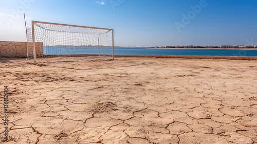 soccer, drought, coastal, image, environmental, impact, sport, water, earth, ground, empty, dirtied, scenery, recreation, terrain, climate, ecosystem, sandy, minimal, urban, perspective, weather, scenic, shoreline, play, atmosphere, community, activity, healthy, culture, land, green, environmentally friendly, visual, energy, preservation, surface, human, exposure, awareness, sustainability, conservation, habitat, abandoned, ecological, desert, vegetation, arid, barren