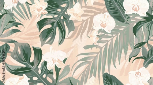 Design an elegant tropical pattern featuring delicate monstera leaves and orchids.