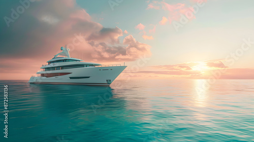 Design Masterpiece: Luxury Yacht Gliding on a Serene Sea at Sunset