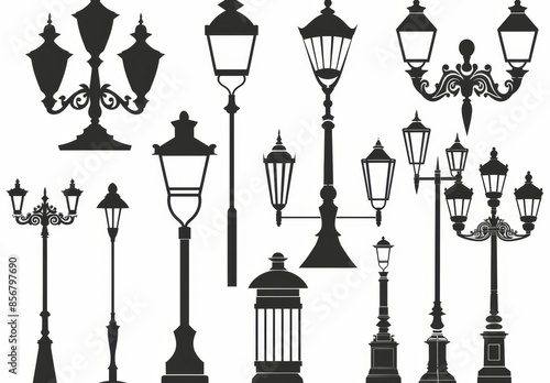 street, lamp, light, night, vintage, post, pillar, electric, icon, design, isolated, art, city, illustration, retro, silhouette, metal, vignetting, park, old, shape, set, electricity, ancient, stock, footpath, style, street light, historic, lantern, lamp-post, urban, pole, sidewalk, illumination, classic, collection, street lighting, iron, original, object