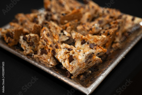 Dessert bars at an event in a plate, close up image of tasty treat at the coffee bar