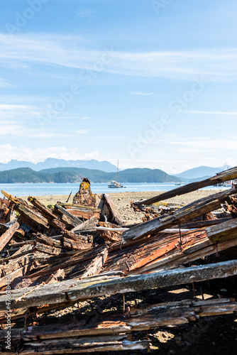 Detail of shipwreck in Squirrel Cove, Cortes Island, British Columbia, Canada