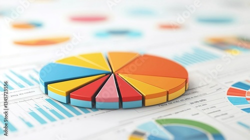 Detailed 3D Financial Chart Illustration with Colorful Segments and Graphs for Comprehensive Analysis
