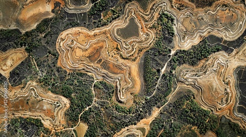aerial, view, mosaic, land, parcel, landscape, agriculture, topography, field, pattern, earth, nature, geography, environment, terrain, cultivation, rural, scenic, vibrant, brown, green, dry, wet, contour, shape, division, dirtied, seasonal, farming, crop, mapping, region, patchwork, natural, biodiversity, satellite, ecosystem, visual, texture, field, landform, variation, earth-tone, horizon, expanse, design, arrangement