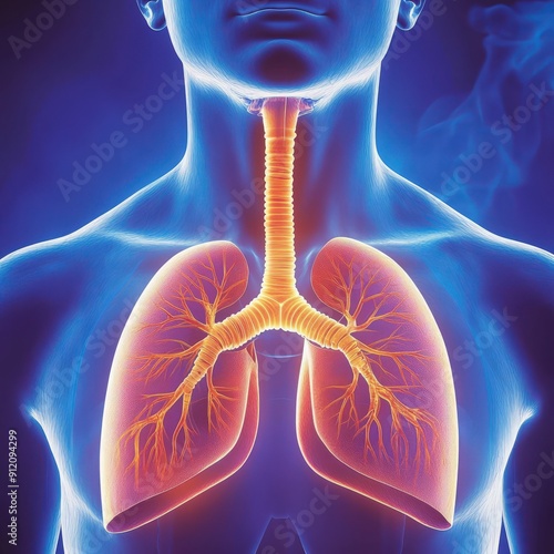 Detailed anatomical illustration of human lungs, highlighting bronchi and vascular structures for educational purposes.