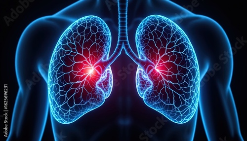 Detailed anatomical representation of lungs.
