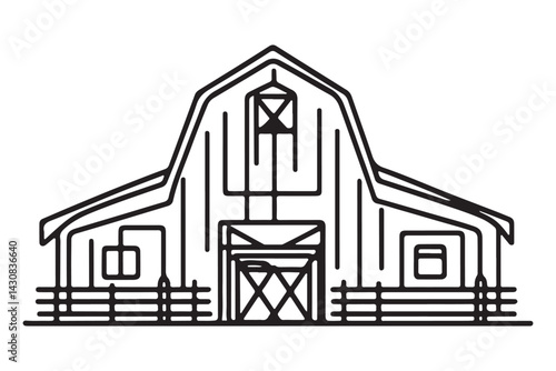 barn, farm, house, vector, illustration, design, rustic, farmhouse, country, architecture, building, outline, rural, fence, window, door, structure, graphic, clip art, drawing, icon, element, symbol, art, isolated, white, black, simple, geometric, modern, clip, decorative, style, minimal, shape, image, pictogram, print, artwork