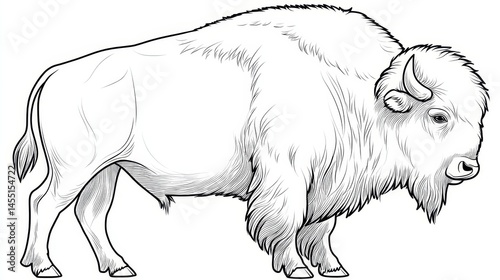 bushy, fauna, plain, textured, detailed, outline, vignetting, fur, white, symbolic, wilderness, large, iconic, thick, grazing, buffalo, horned, muscle, monochrome, herbivore, habitat, north, illustration, powerful, mammal, creature, black, sturdy, strength, wildlife, hoofed, strong, american, majestic, drawing, nature, native, beauty, bison, art, wild, shaggy, peaceful, coat, animal