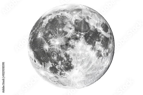 Detailed black and white image of the full moon, showcasing lunar craters and surface textures. Perfect for astronomy and science themes.