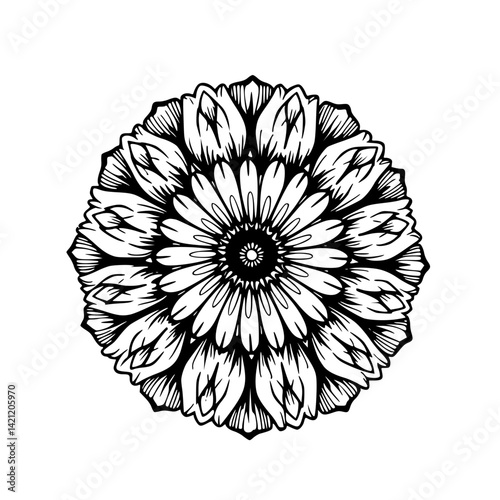Detailed Black and White Mandala Flower Design