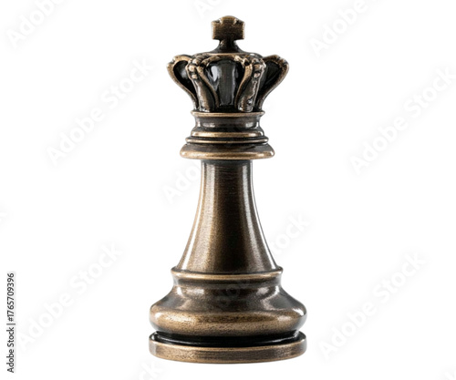 Detailed bronze chess king piece isolated on a stark background symbolizing strategy and royalty