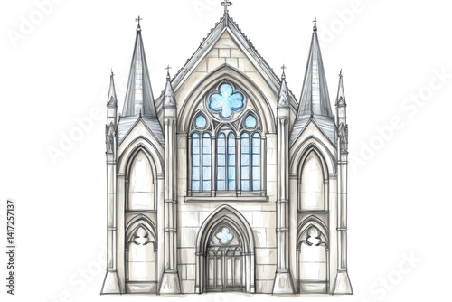 Detailed cathedral window illustration isolated on white ideal for historical architecture projects or church designs