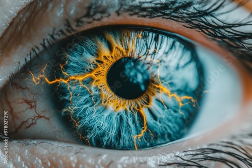 blue eye, vein, fractal, orange, retina, ocular, pupil, vision, connectivity, wave, power, sharpened, charge, optic, future, tension, electricity, quantum, anatomy, circuit, current, depth, structure, cybernetic, brain wave, illumination, perception