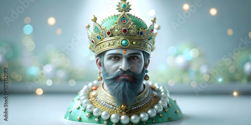 Detailed close up portrait of Reyes Magos adorned with festive makeup enhancing regal appearance and festive spirit ideal for magazine ads or banners featuring ample text copy space.