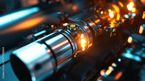 Detailed close-up of a shiny metallic component with glowing elements, capturing the essence of advanced technology and innovation in engineering.