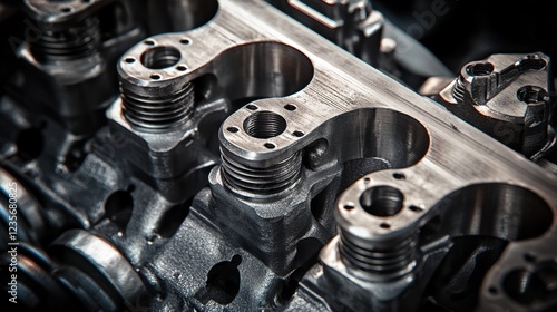 Detailed Close-Up of Automotive Engine Cylinder Head Metal Component