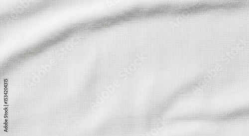 Detailed close-up of crumpled white fabric with subtle grid texture and gentle shadow play.