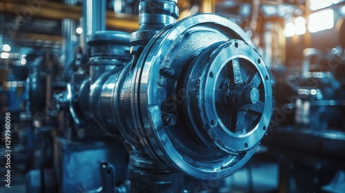 Detailed Close-Up of Industrial Pump in Factory Environment