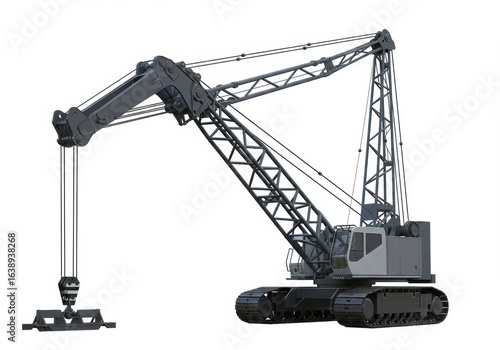 Detailed depiction of a tracked crane exhibiting mechanical complexity in construction