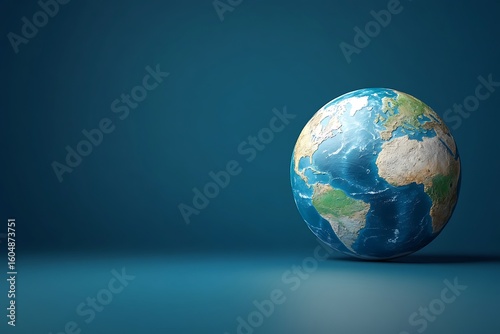 Detailed Earth Globe Render on Blue Surface Showing Continents and Oceans