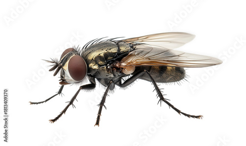 Detailed fly isolated on transparent background, showcasing its intricate features, including its multifaceted eyes, delicate wings, and bristled body, in a naturalistic pose