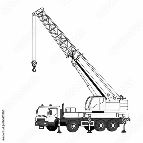 Detailed illustration of a crane's arm with a hook in a construction setting