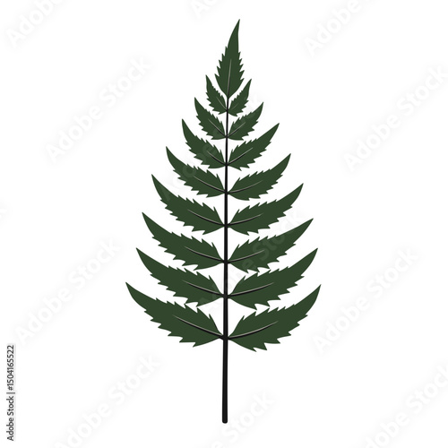 Detailed Illustration of a Dark Green Fern Leaf on a White Background, Botanical Vector Graphic