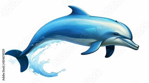 Detailed illustration of a playful dolphin in high resolution art, showcasing realistic depiction and dynamic movement in ocean life.