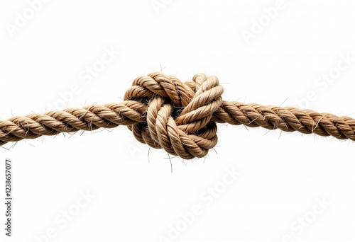 Detailed image of a tight rope knot, highlighting strength and tension, with a pure white background emphasizing its form and the concept of steadfastness.