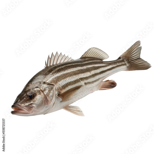 Detailed image of striped fish showcasing its distinct horizontal stripes and fins, highlighting its natural beauty and aquatic features. This fish is often found coastal waters and is popular