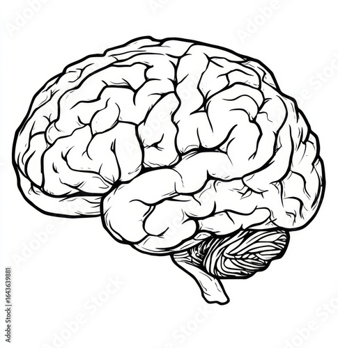 Detailed Line Art Illustration of a Human Brain: Neurology, Anatomy, and Cognitive Function