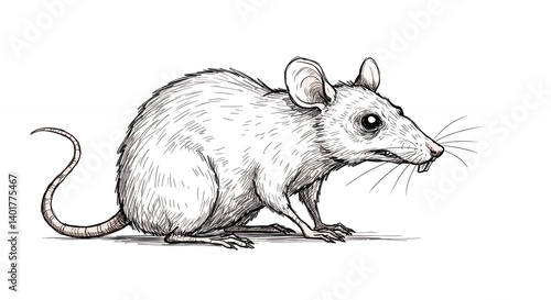 Detailed line drawing of a gray mouse