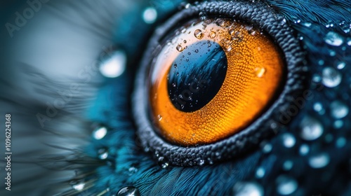 macro, insect, eye, photograph, vibrant, orange, black, texture, water, droplet, detail, fine, structure, microscopic, nature, closeup, sharpened, detailed, biological, entomology, microcosm, iridescent, no people