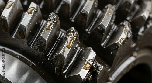 gear, mechanical, machinery, industrial, oil, lubricant, metal, component, engineering, closeup, detail, automotive, engine, transmission, workshop, factory, technology, power, system, cog, mechanism, dirty, grime, particle, metallic, texture, dark, abstract, equipment, maintenance, repair, friction, precision, drive, gearbox, steel, liquid, drop, wet, heavy, gritty, worn, surface, motion, operation, part, strength, process