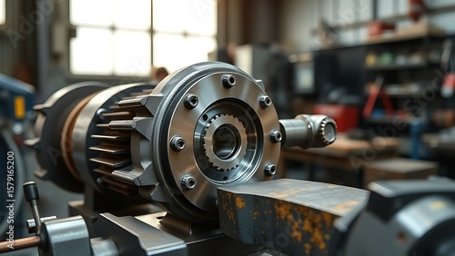 Detailed metal workpiece in an industrial workshop, showcasing precision craftsmanship.