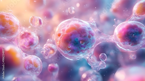 Detailed Microplastics Absorption by Cells - Informative Scientific and Educational Imagery