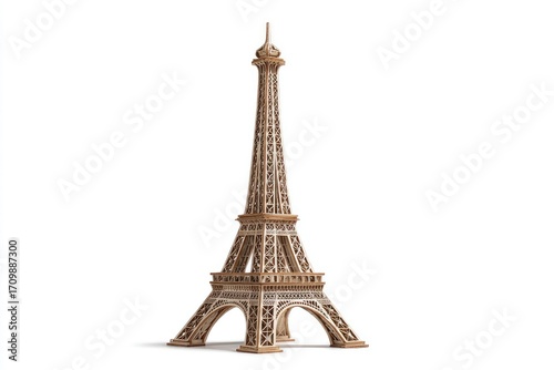 model, eiffel tower, tower, paris, france, architecture, wood, brown, beige, light, three-dimensional, render, illustration, design, tour tourism, travel, landmark, historical building, structure, tall, vertical, detailed, ornate, intricate, perspective, isolated, white, background, copy space, craft, miniature, replica, brownish, decorative, art, image, digital, graphic, photorealistic