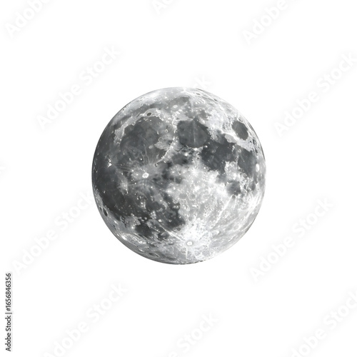 Detailed moon surface glowing against the night sky isolated on white