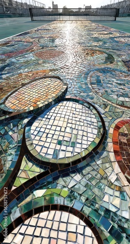 mosaic, tennis, court, colourful, pattern, tile, glasses, art, design, texture, geometric, decorative, patterned, artful, intricate, floral, abstract, shape, circle, oval, many-coloured, surface, artistic, detail, closeup, sport, public, urban, modern, bright, vibrant, eye-catching, unique, textured, craftsmanship, creative, intriguing, contemporary, tennis court