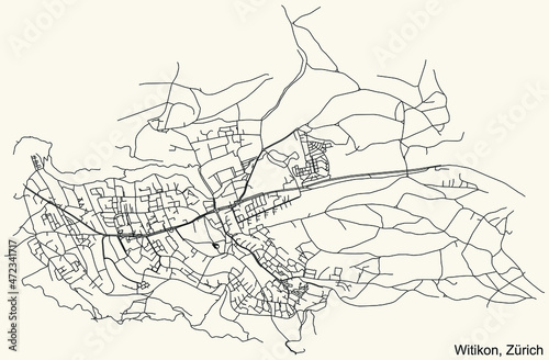Detailed navigation urban street roads map on vintage beige background of the district Witikon Quarter of the Swiss regional capital city of Zurich, Switzerland